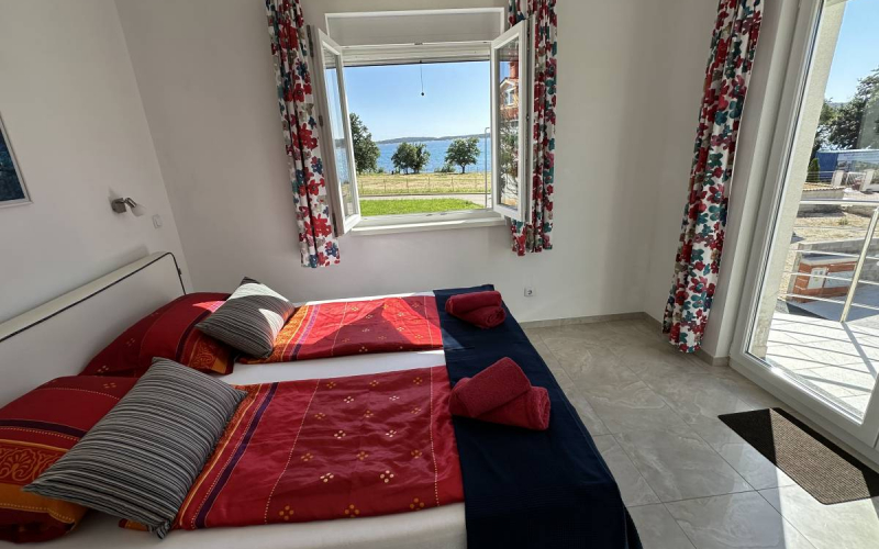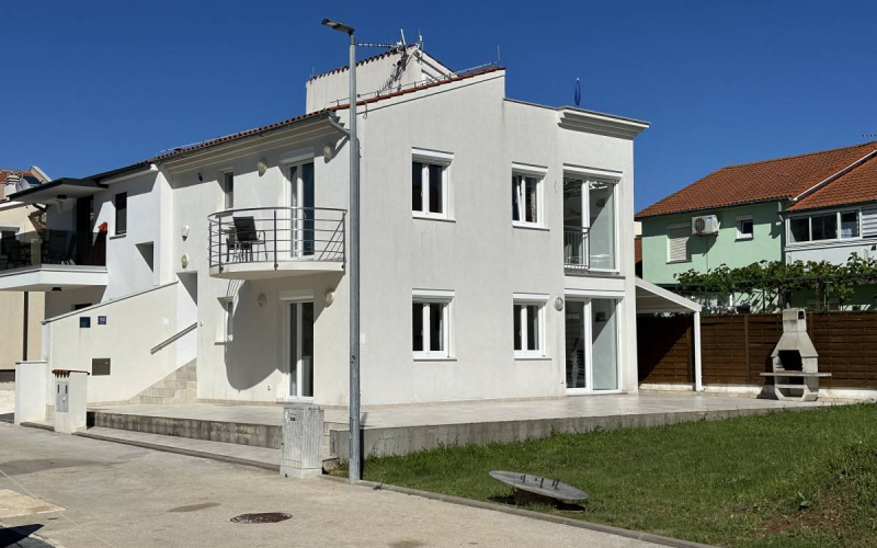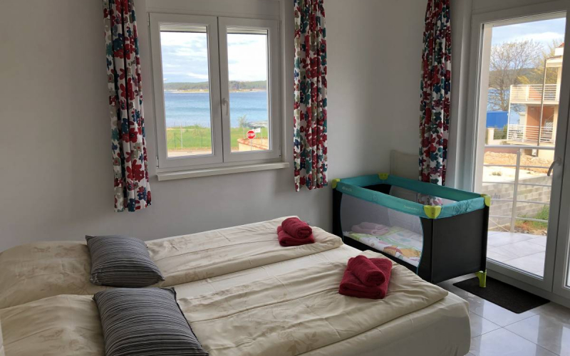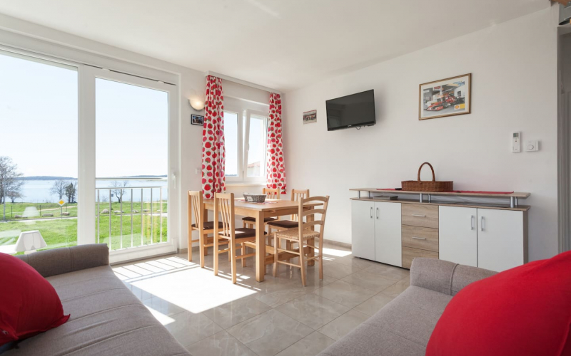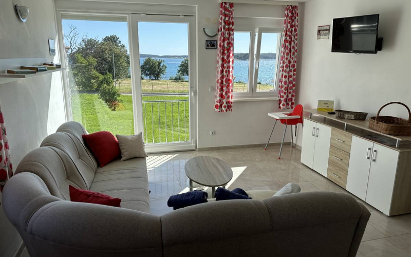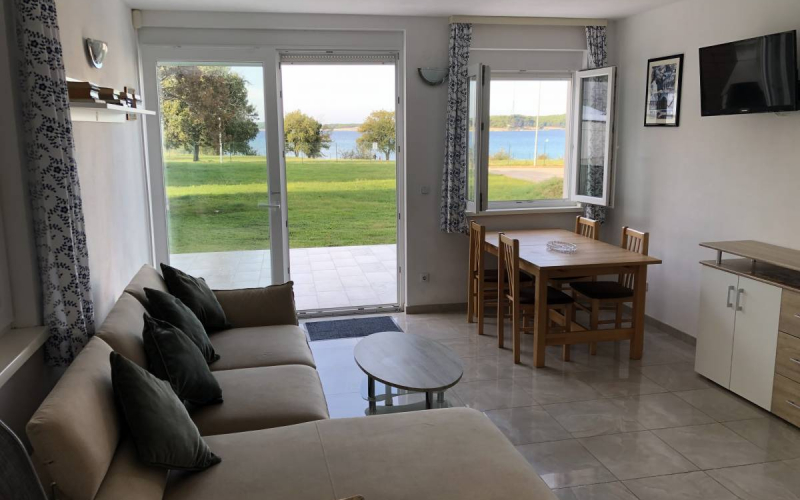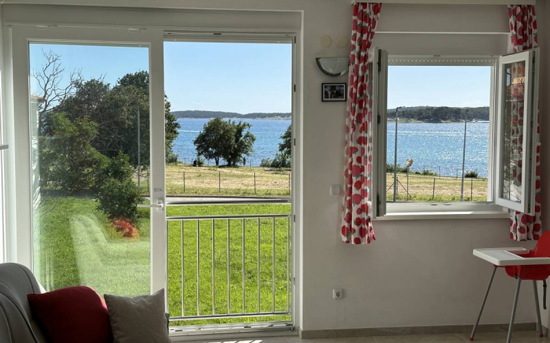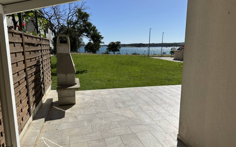 Strandvilla mit großer Terrasse und Außengrill in der ersten Reihe am Badestrand der geschützten Bucht von Medulin-Posesi.